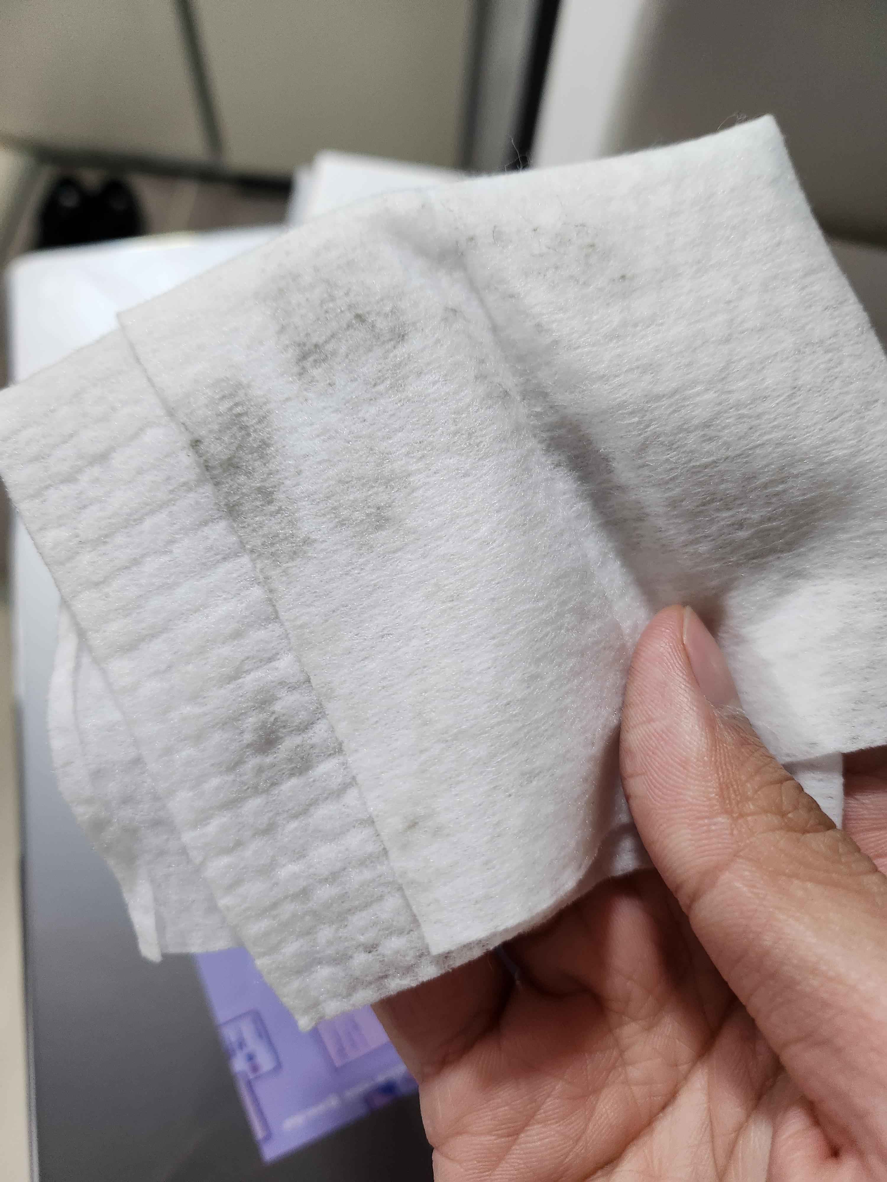 손목 받침대를 닦으면 시커먼 게 계속 묻어 나온다.